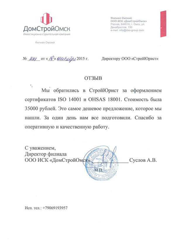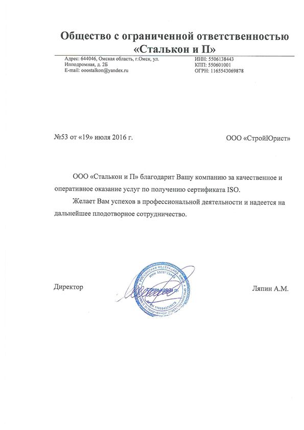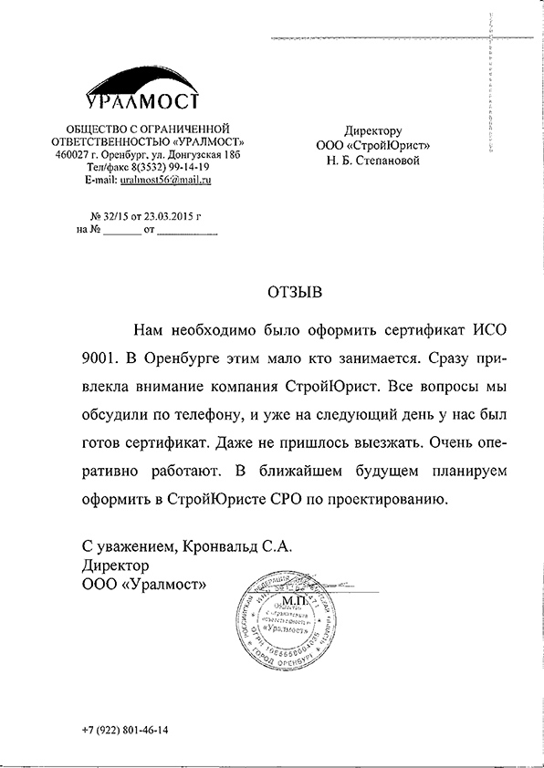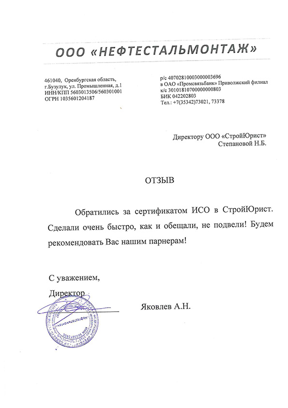 Отзывы клиентов "СтройЮрист" по ISO в Златоусте