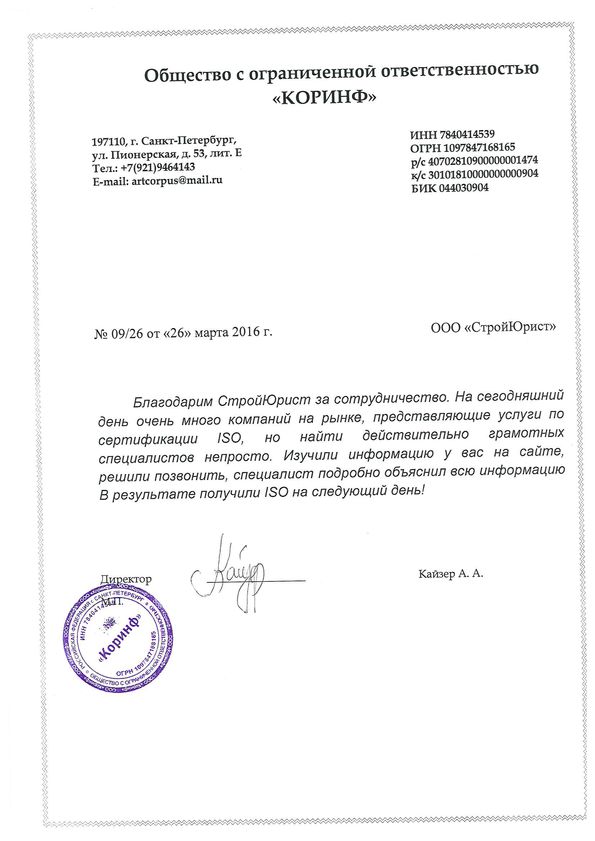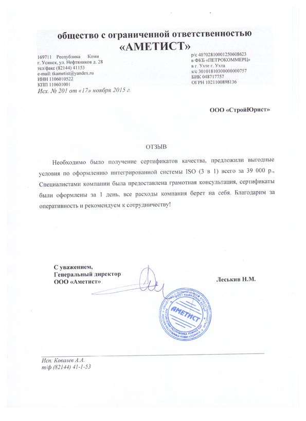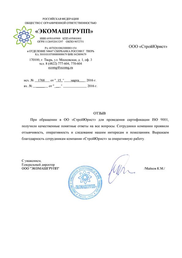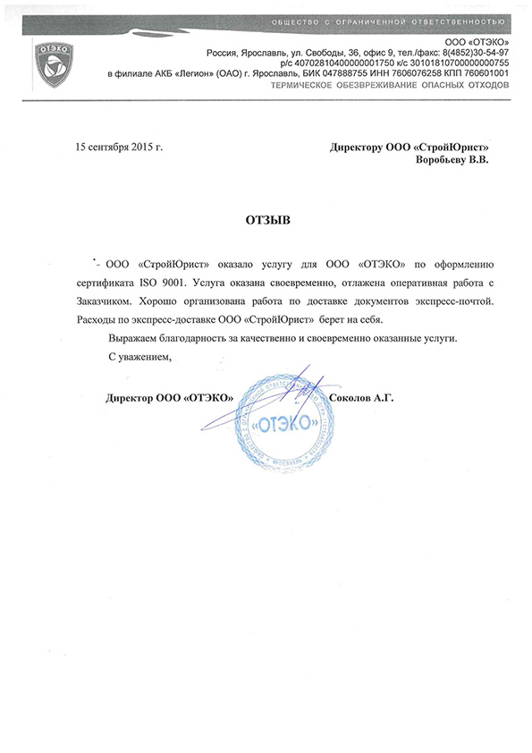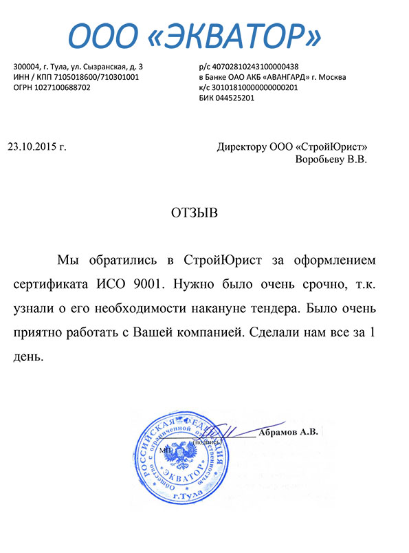 Отзывы клиентов "СтройЮрист" по ISO в Златоусте