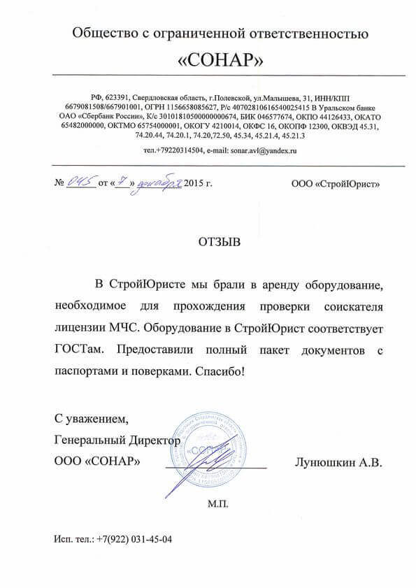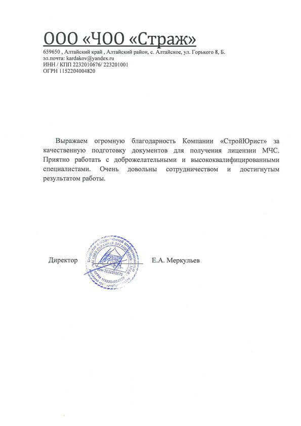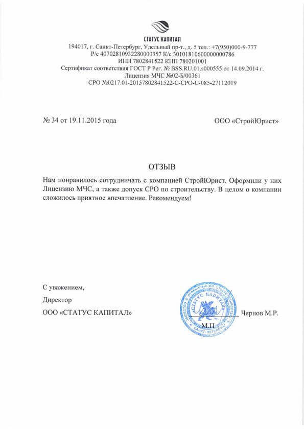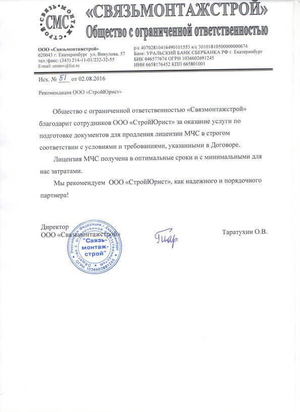 Отзывы клиентов "СтройЮрист" по лицензированию МЧС в Златоусте