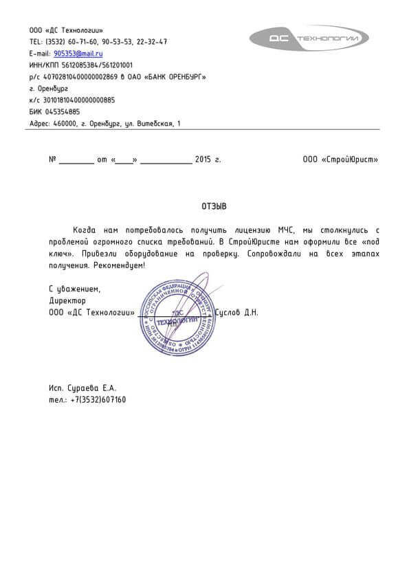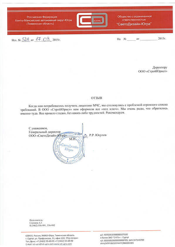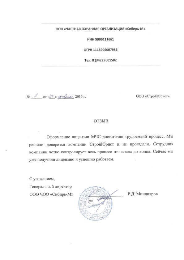 Отзывы клиентов "СтройЮрист" по лицензированию МЧС в Златоусте