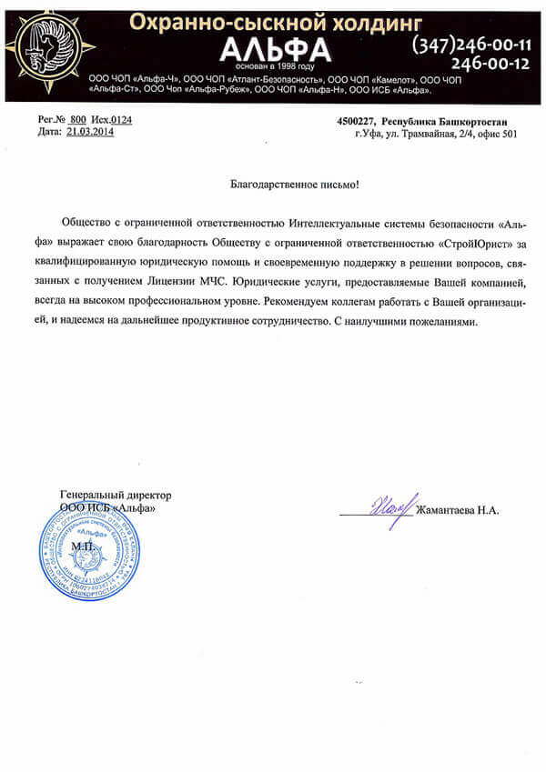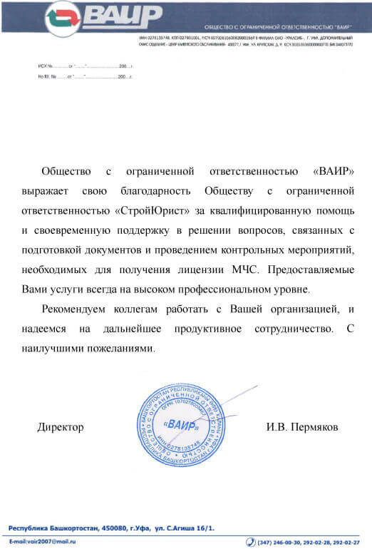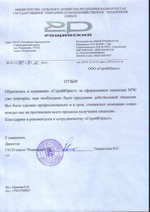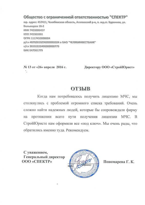 Отзывы клиентов "СтройЮрист" по лицензированию МЧС в Златоусте