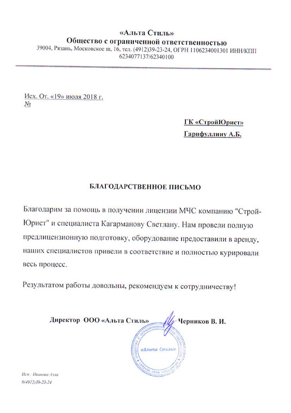 Отзывы клиентов "СтройЮрист" по лицензированию МЧС в Златоусте