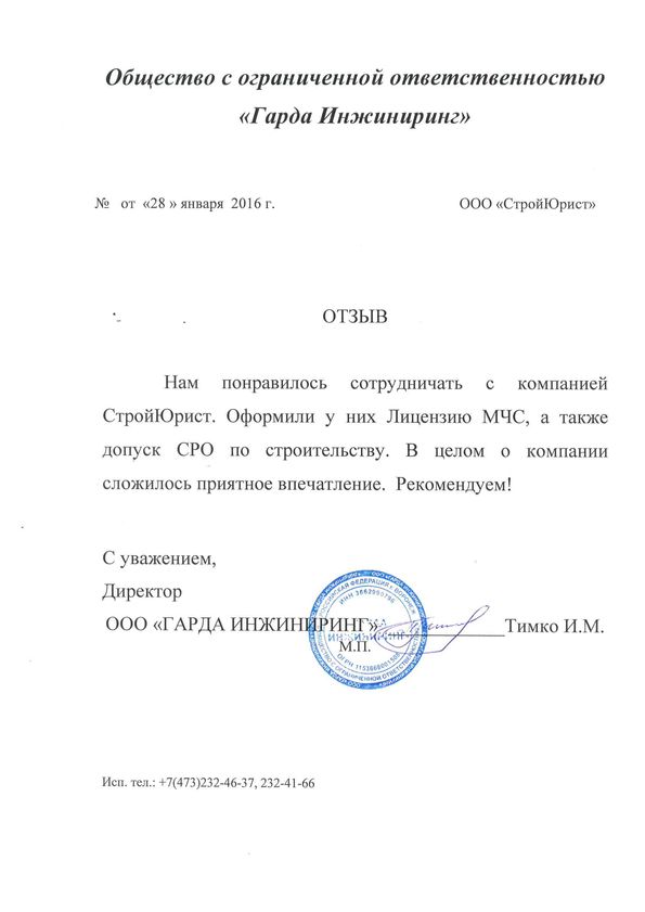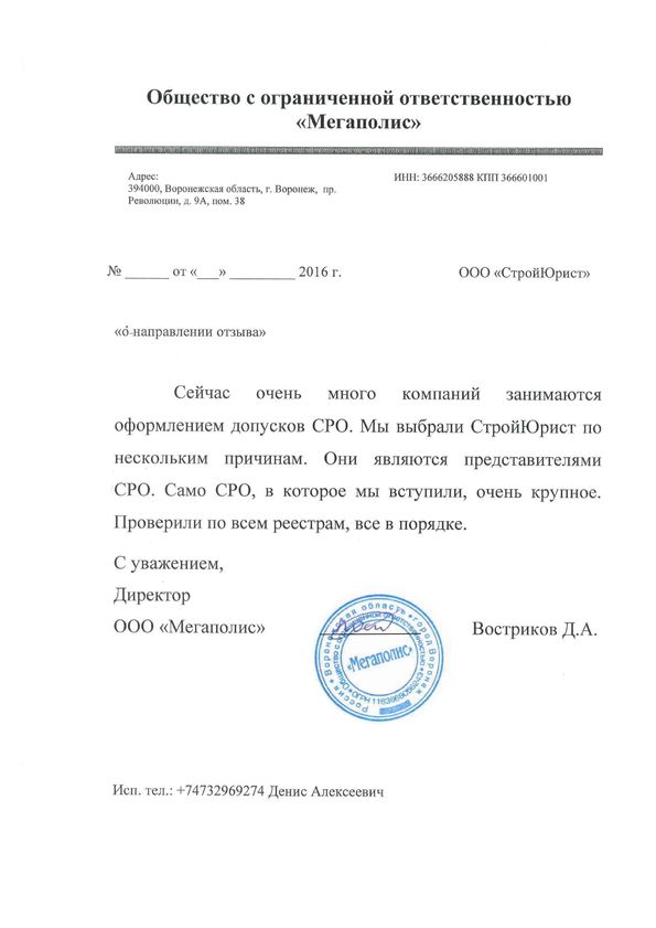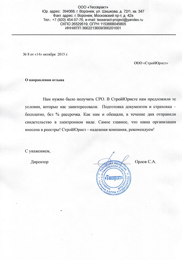 Отзывы клиентов "СтройЮрист" по вступлению в СРО в Златоусте