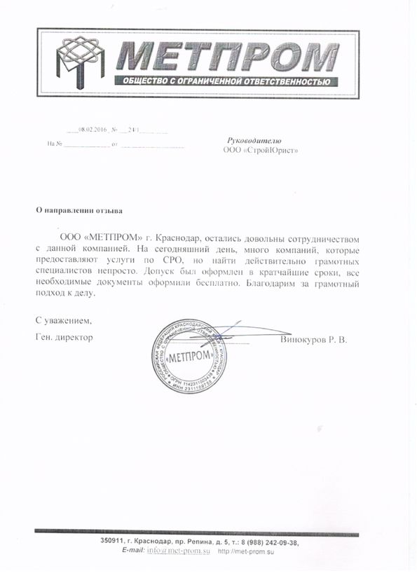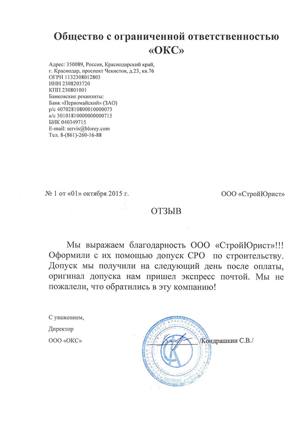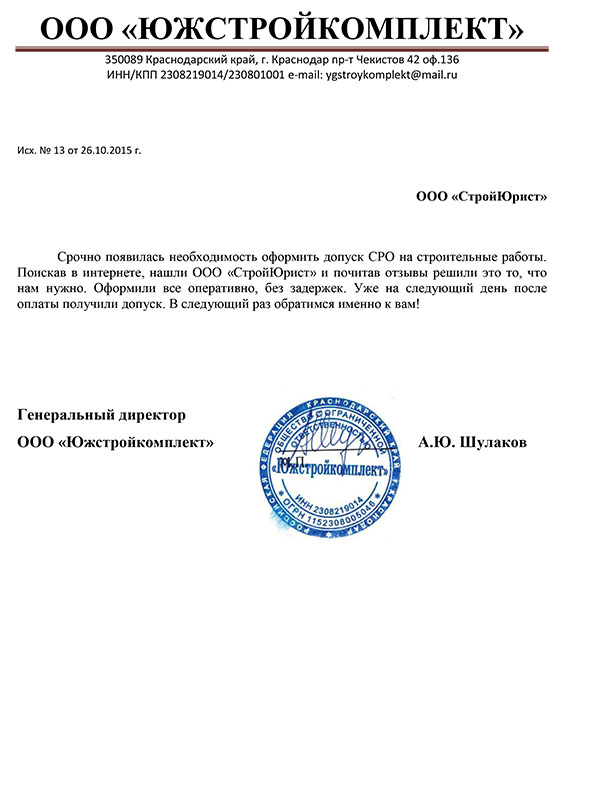 Отзывы клиентов "СтройЮрист" по вступлению в СРО в Златоусте