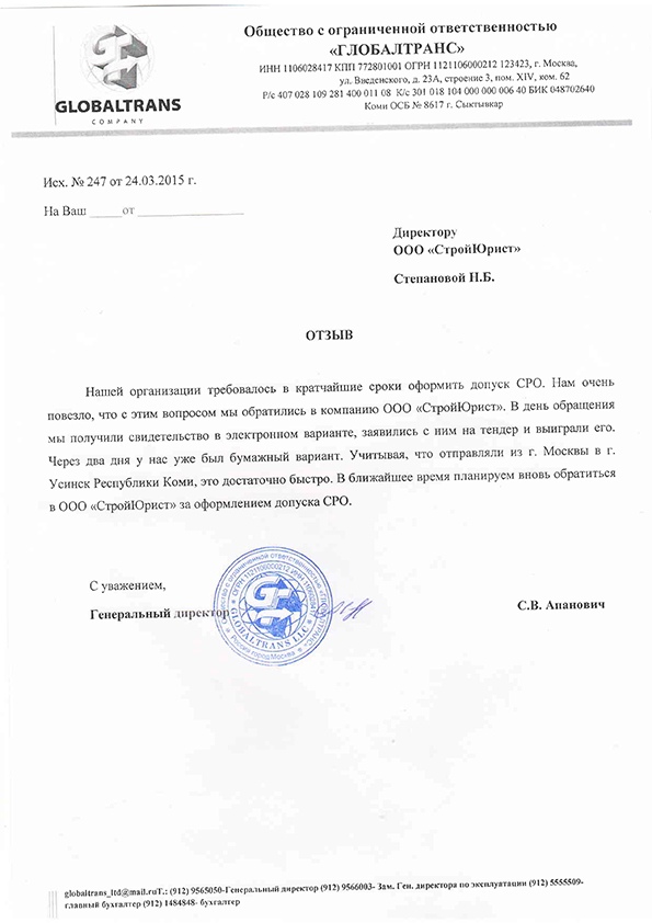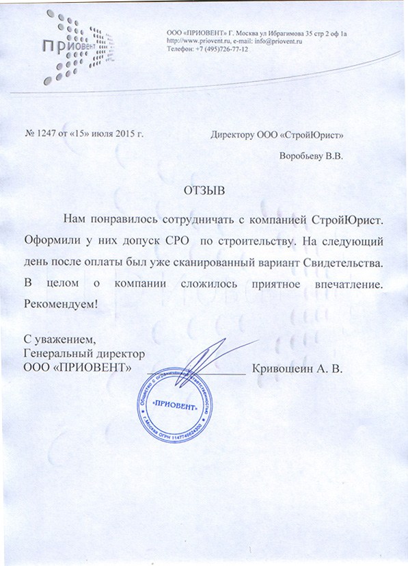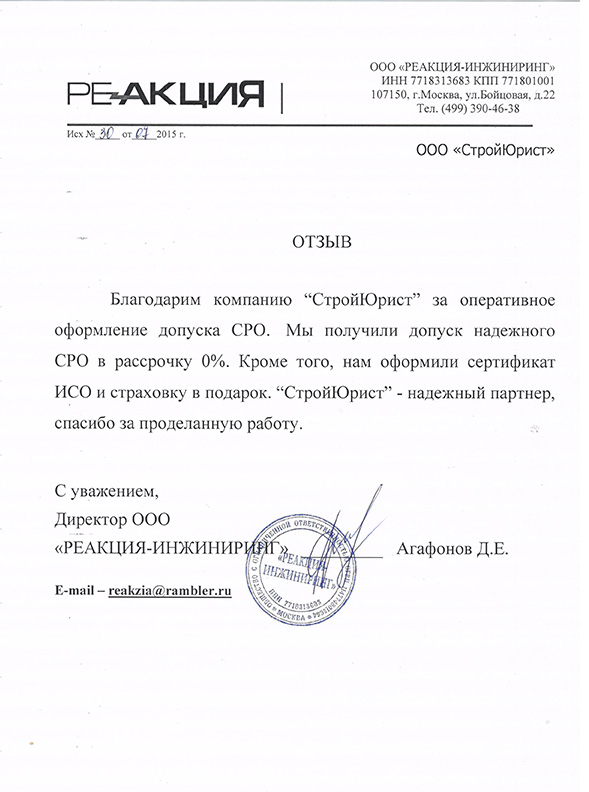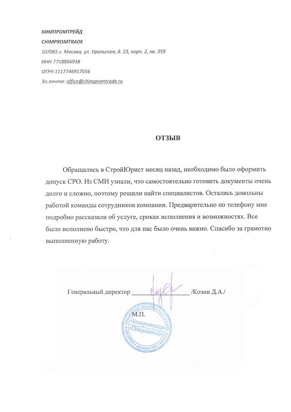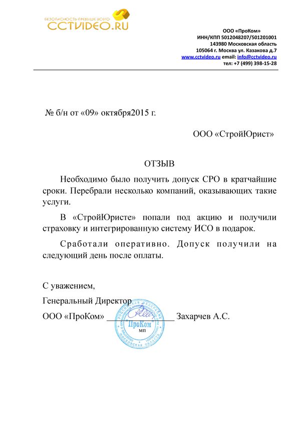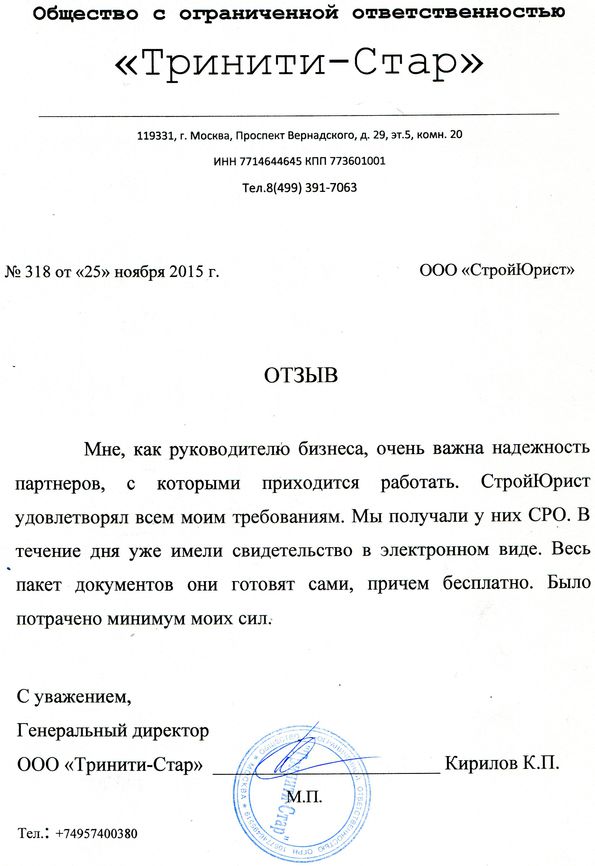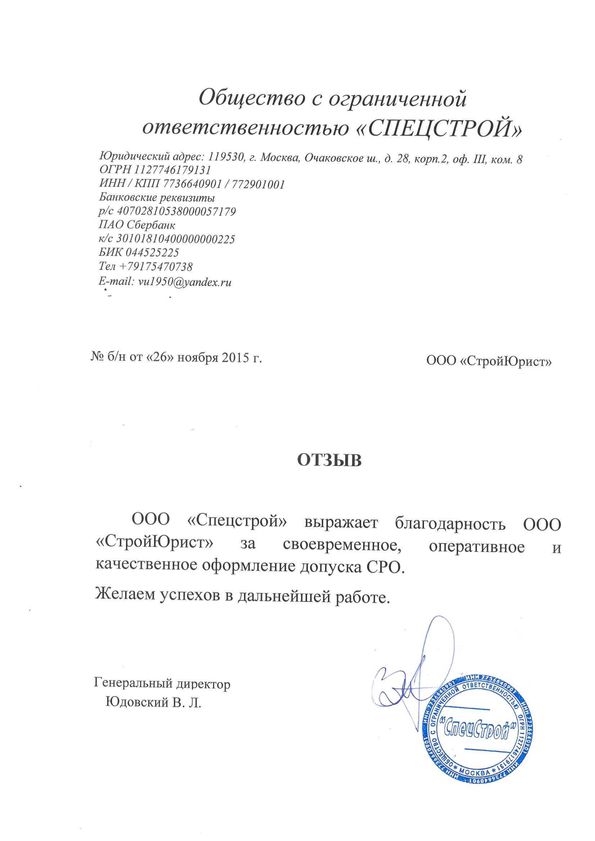 Отзывы клиентов "СтройЮрист" по вступлению в СРО в Златоусте