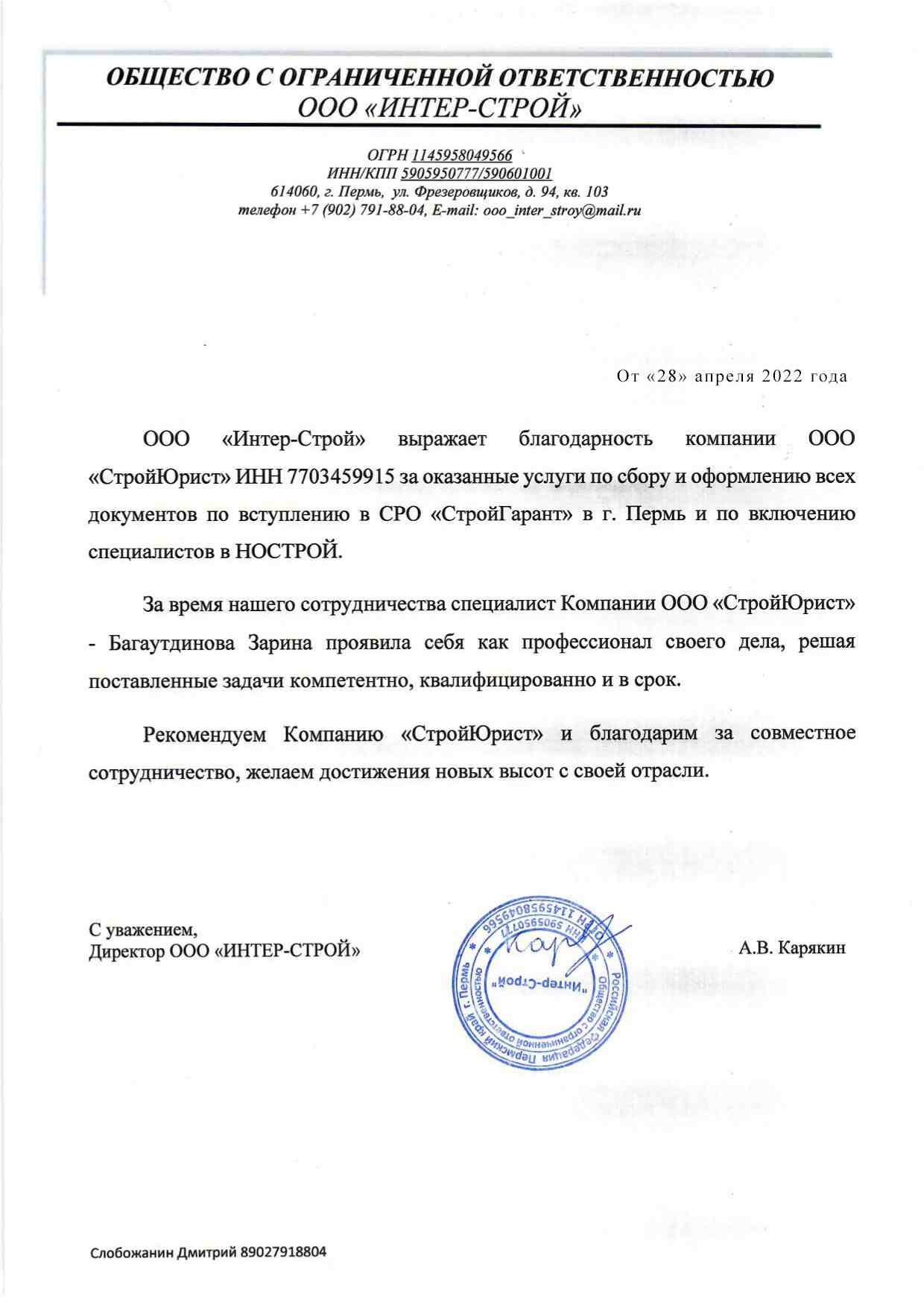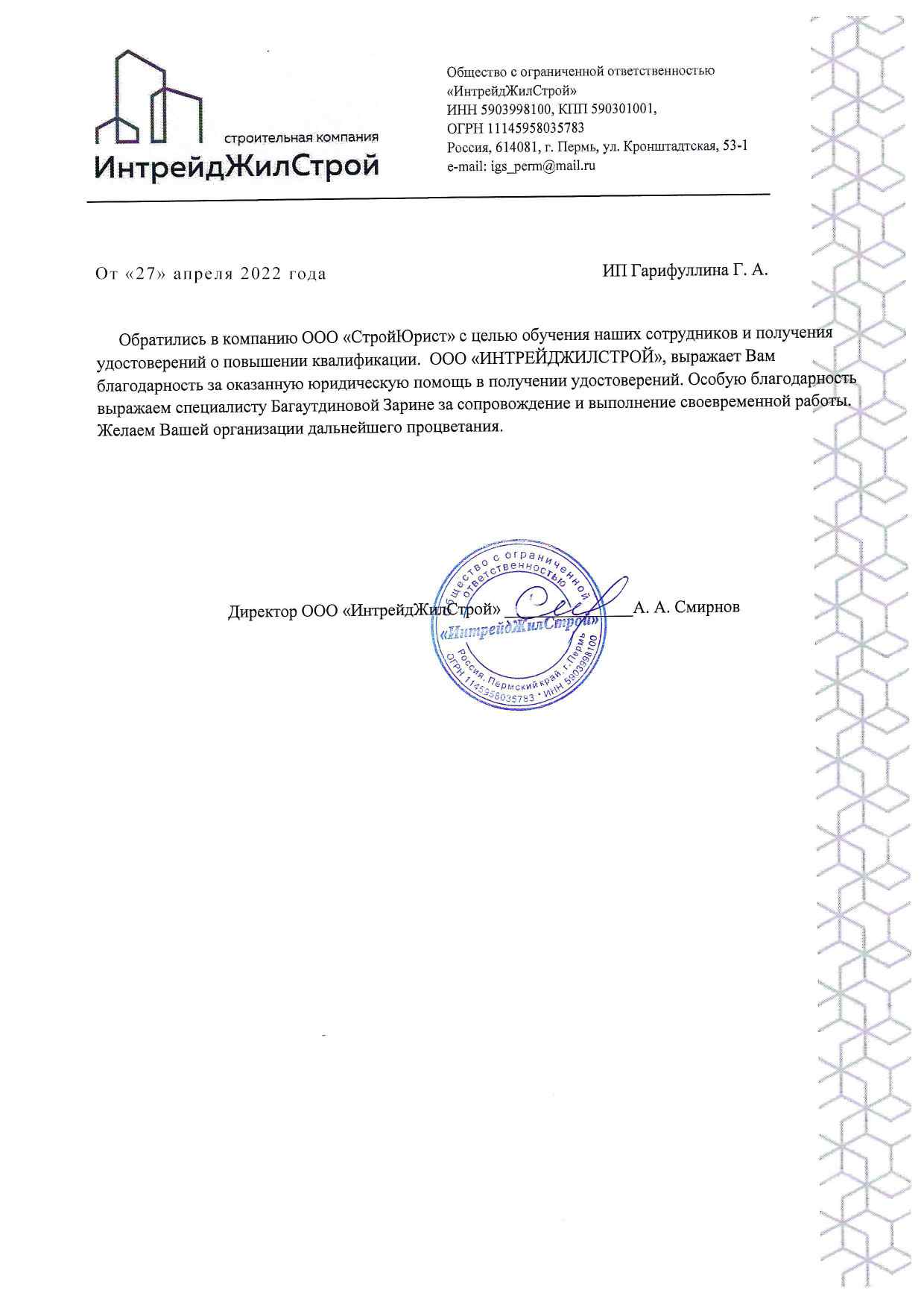 Отзывы клиентов "СтройЮрист" по вступлению в СРО в Златоусте