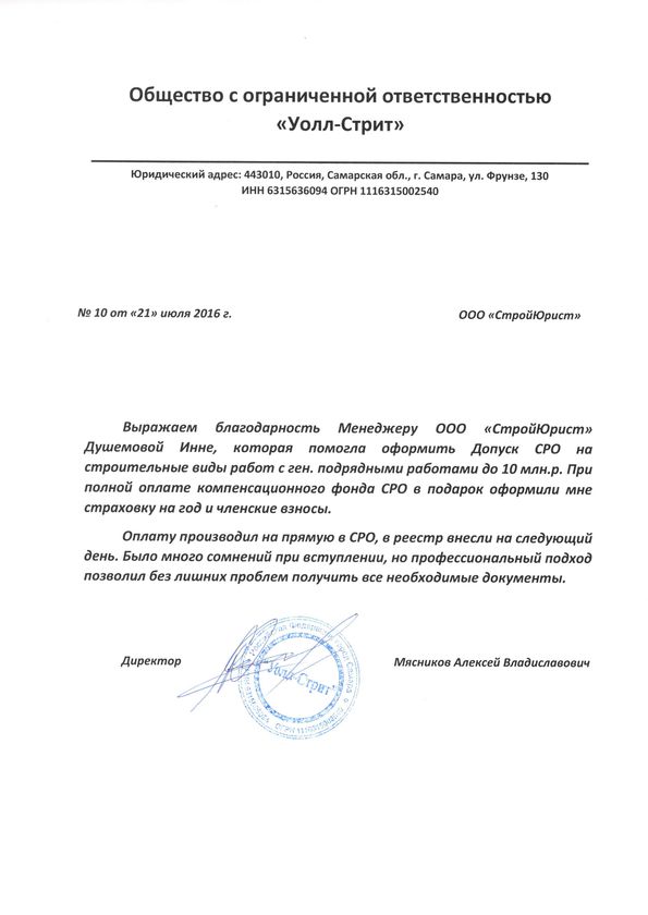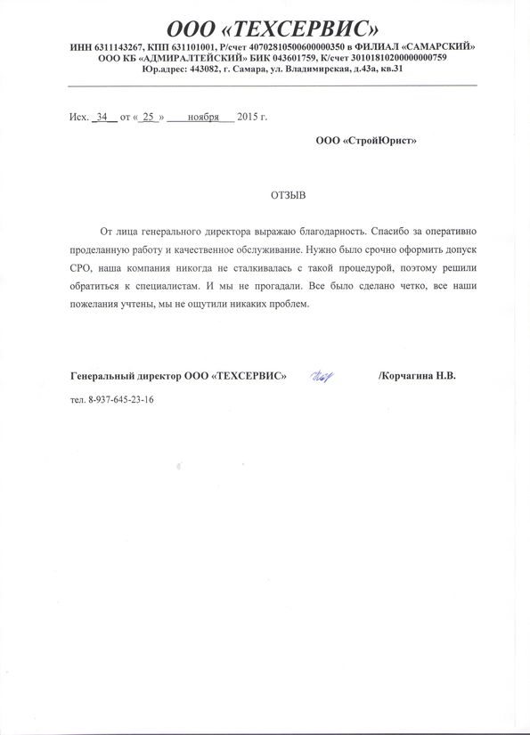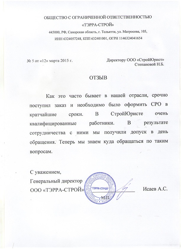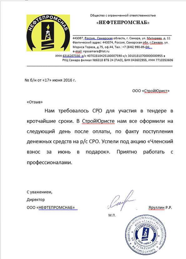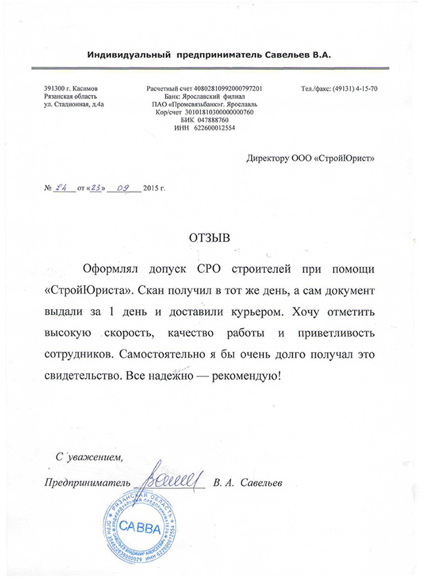 Отзывы клиентов "СтройЮрист" по вступлению в СРО в Златоусте