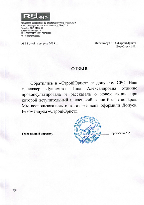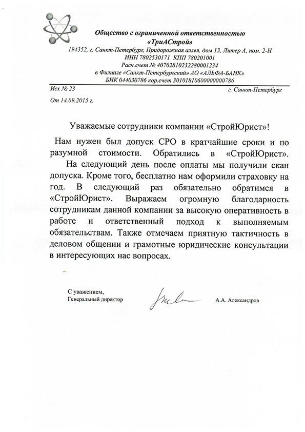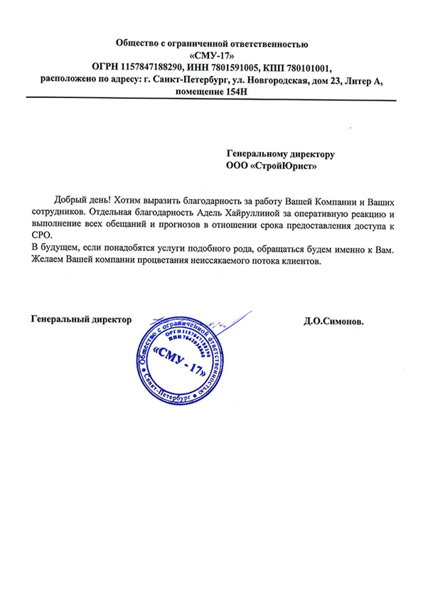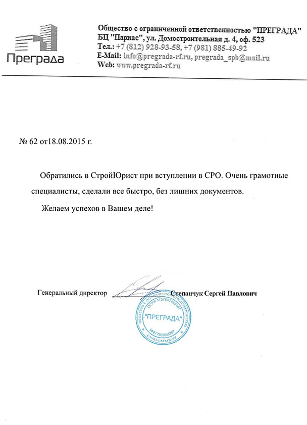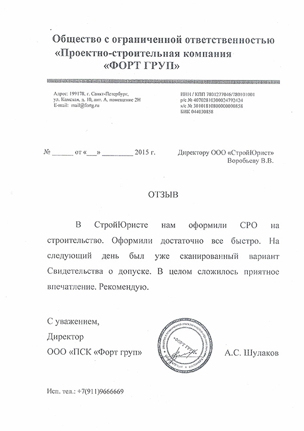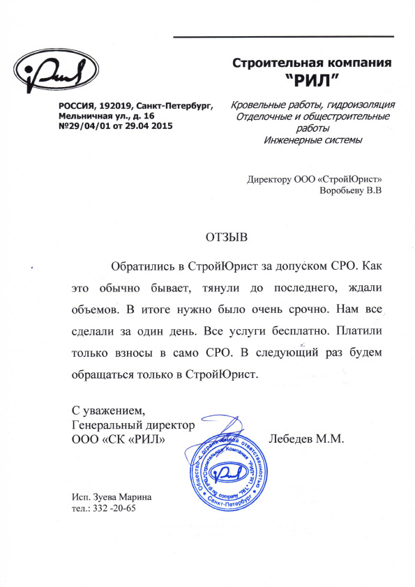 Отзывы клиентов "СтройЮрист" по вступлению в СРО в Златоусте
