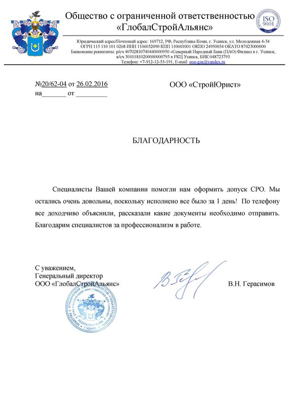 Отзывы клиентов "СтройЮрист" по вступлению в СРО в Златоусте