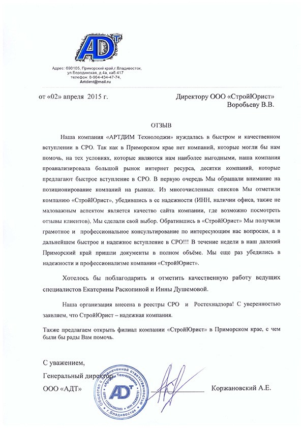 Отзывы клиентов "СтройЮрист" по вступлению в СРО в Златоусте