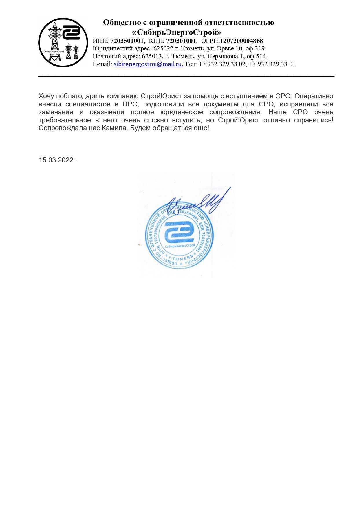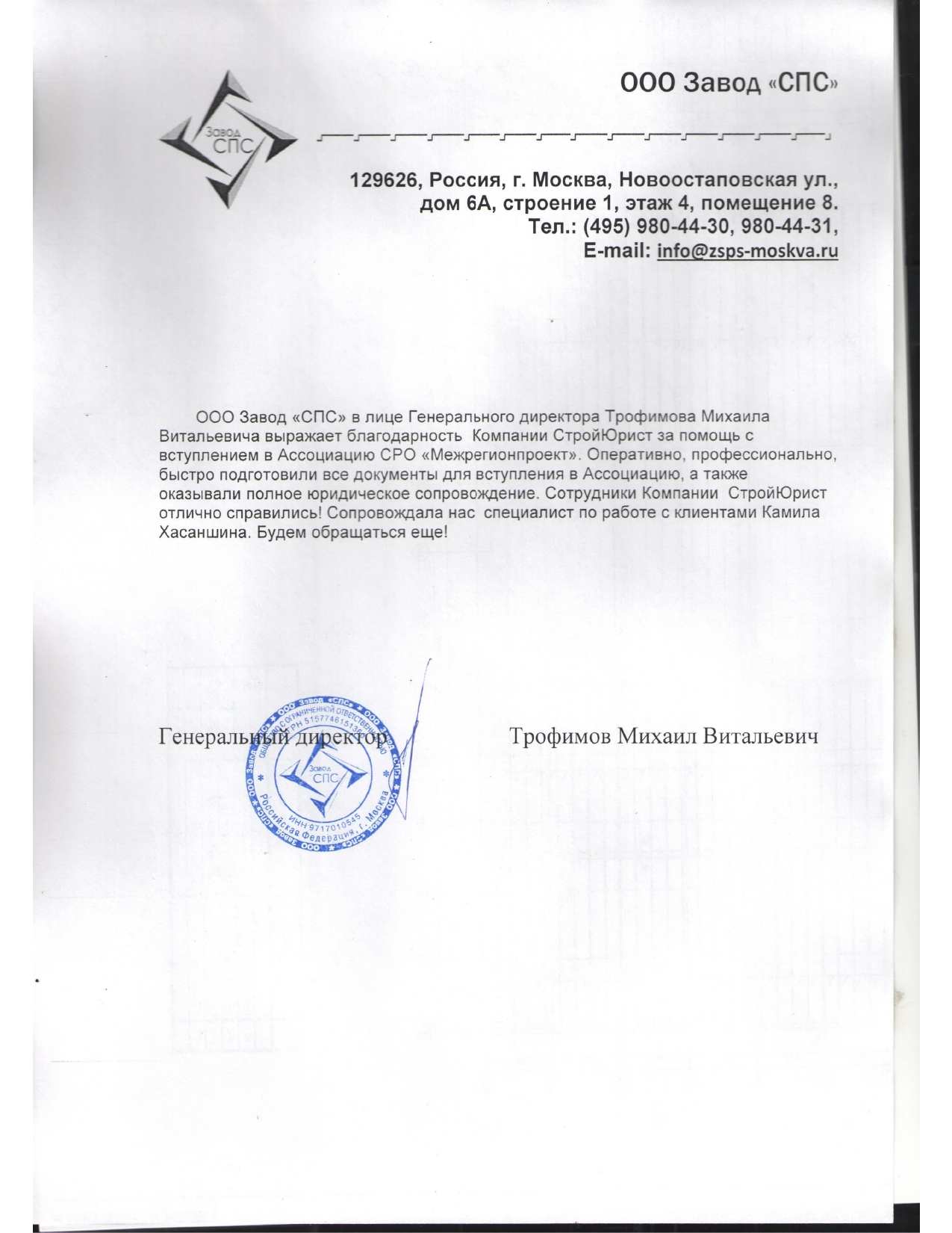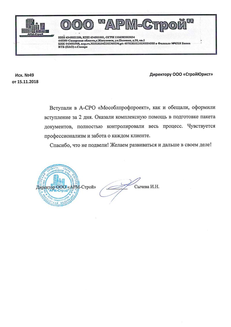 Отзывы клиентов "СтройЮрист" по вступлению в СРО в Златоусте