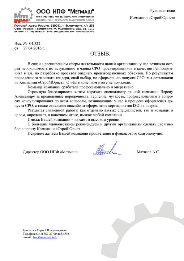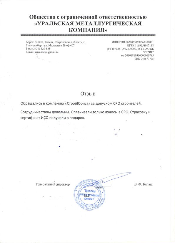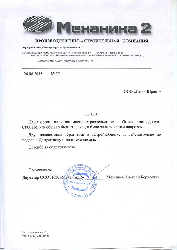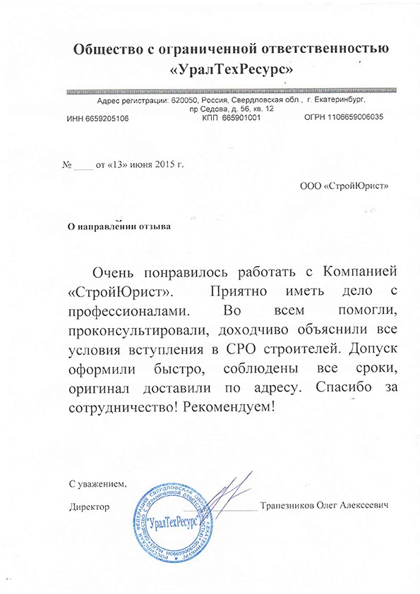 Отзывы клиентов "СтройЮрист" по вступлению в СРО в Златоусте