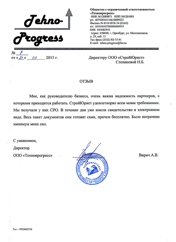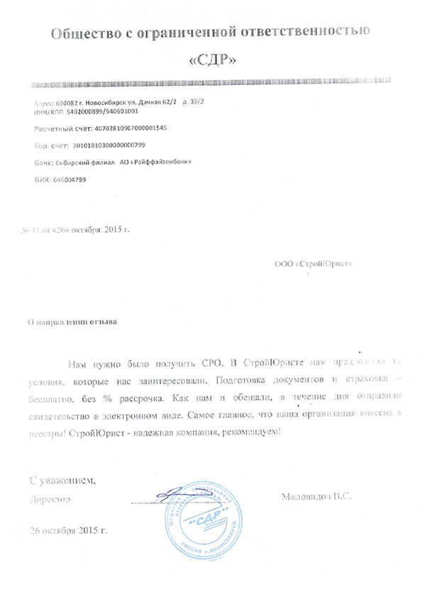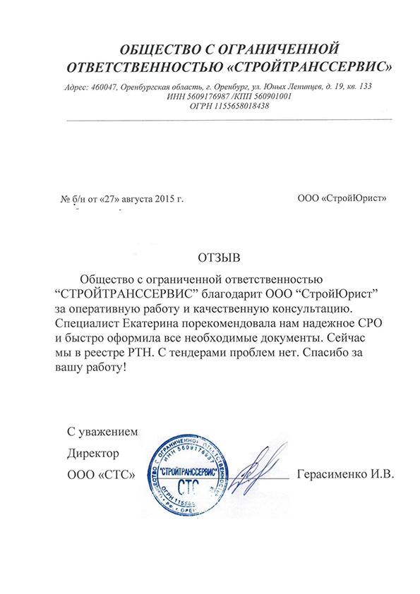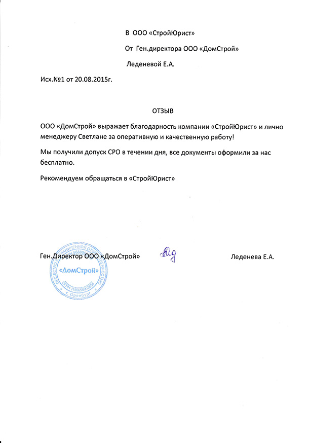 Отзывы клиентов "СтройЮрист" по вступлению в СРО в Златоусте