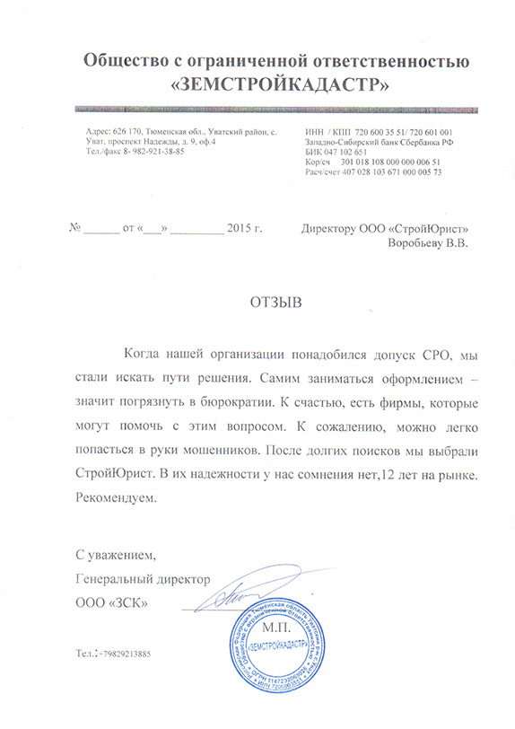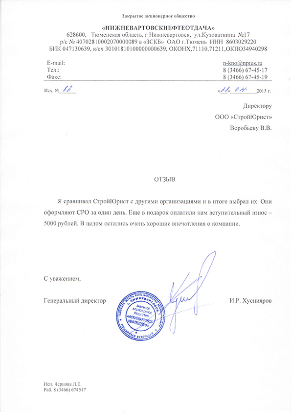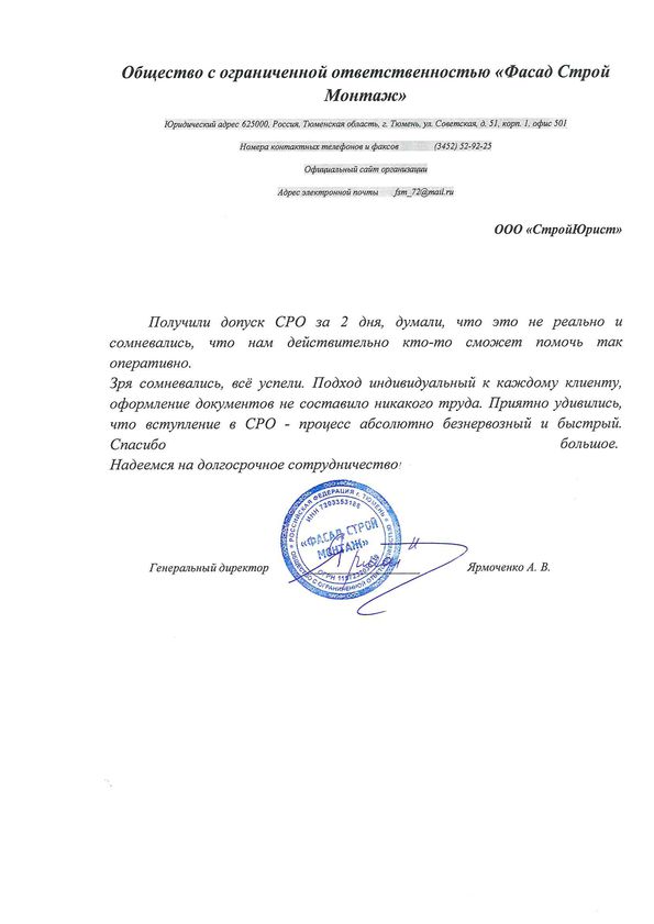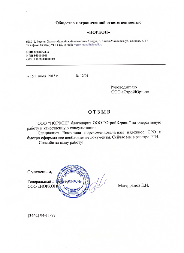 Отзывы клиентов "СтройЮрист" по вступлению в СРО в Златоусте