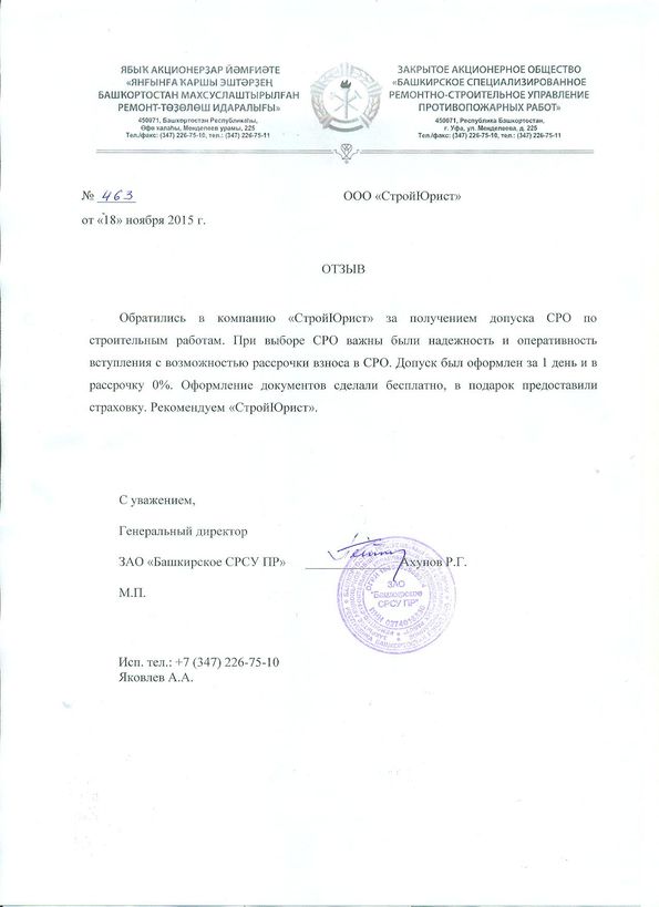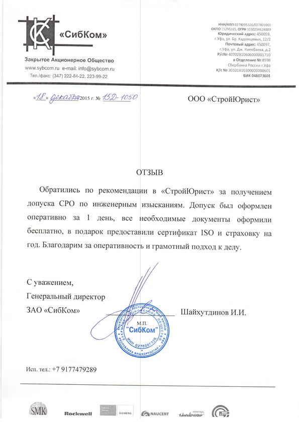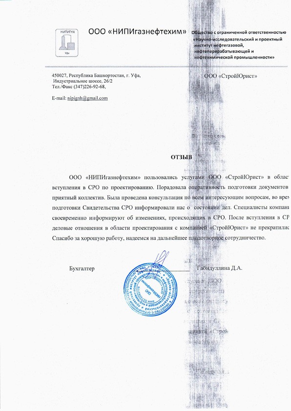 Отзывы клиентов "СтройЮрист" по вступлению в СРО в Златоусте